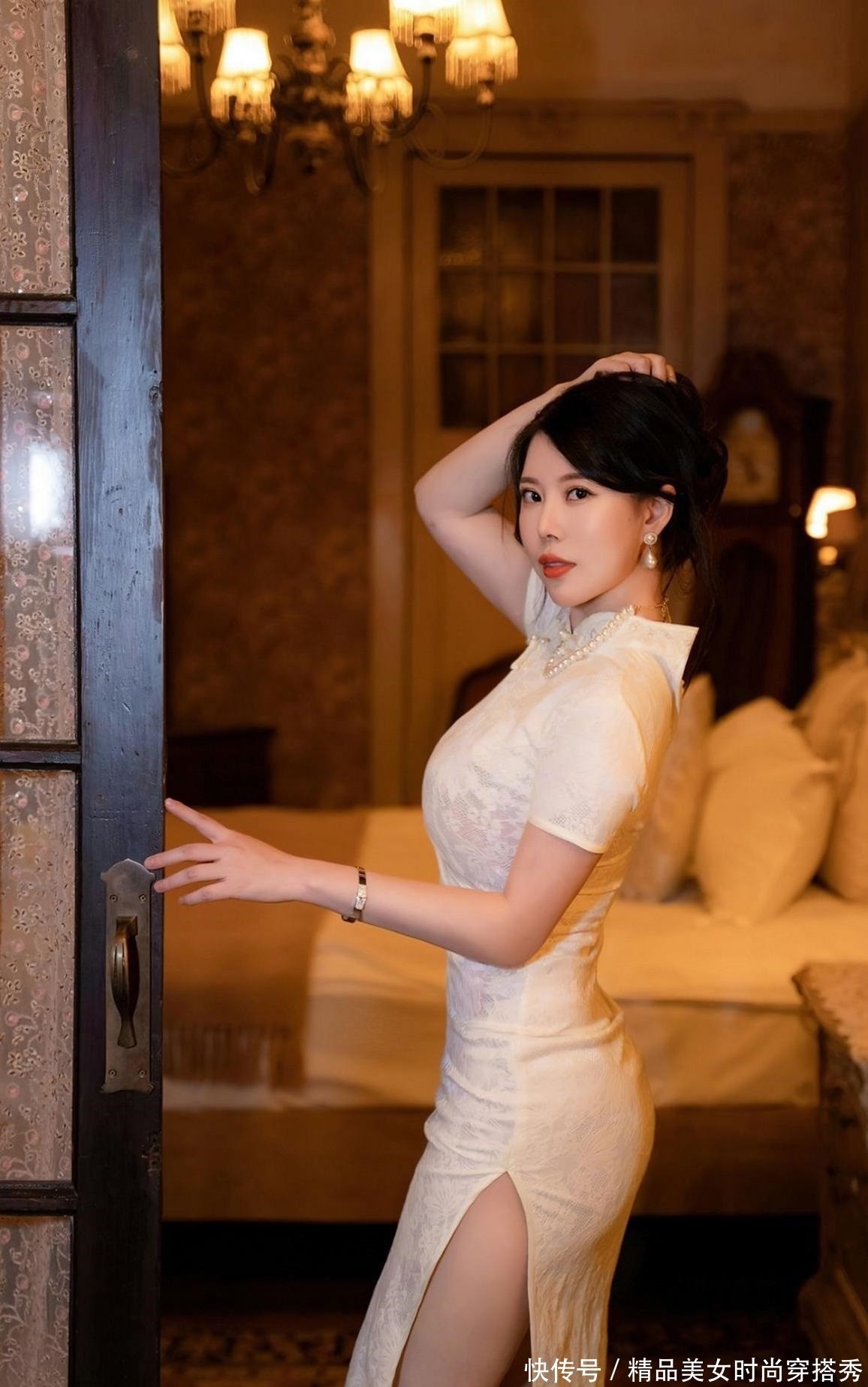 美女模特白茹雪,一袭素雅的白色古典旗袍,穿出属于你的韵味之美